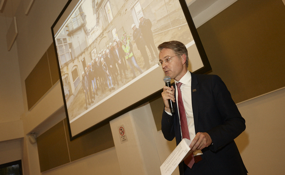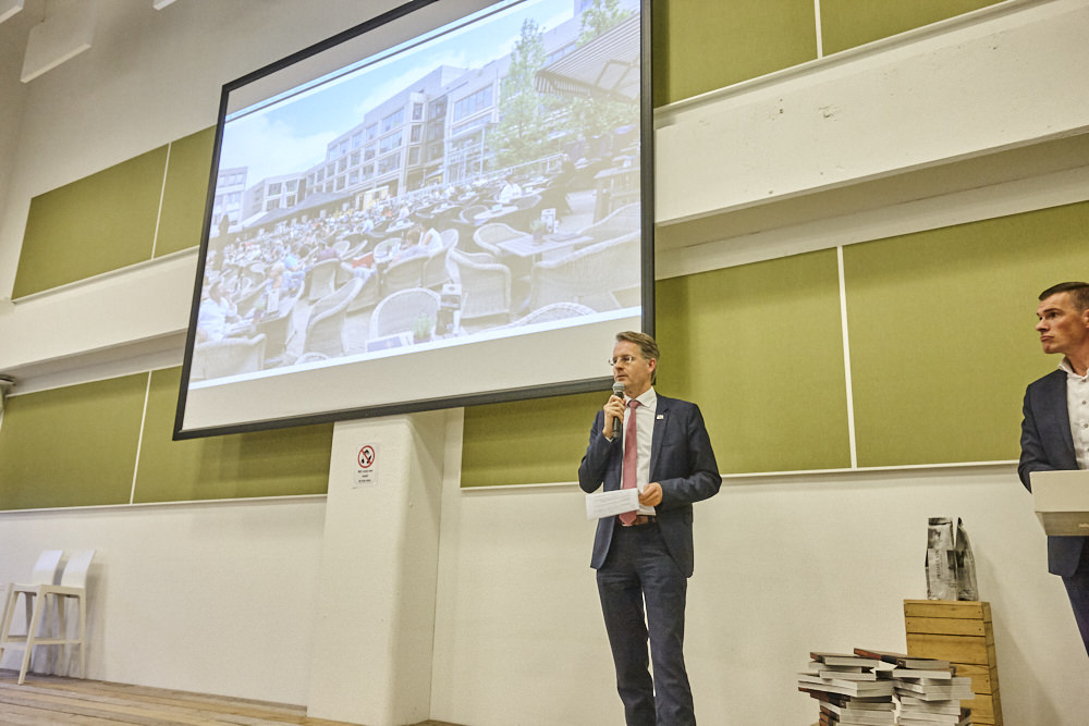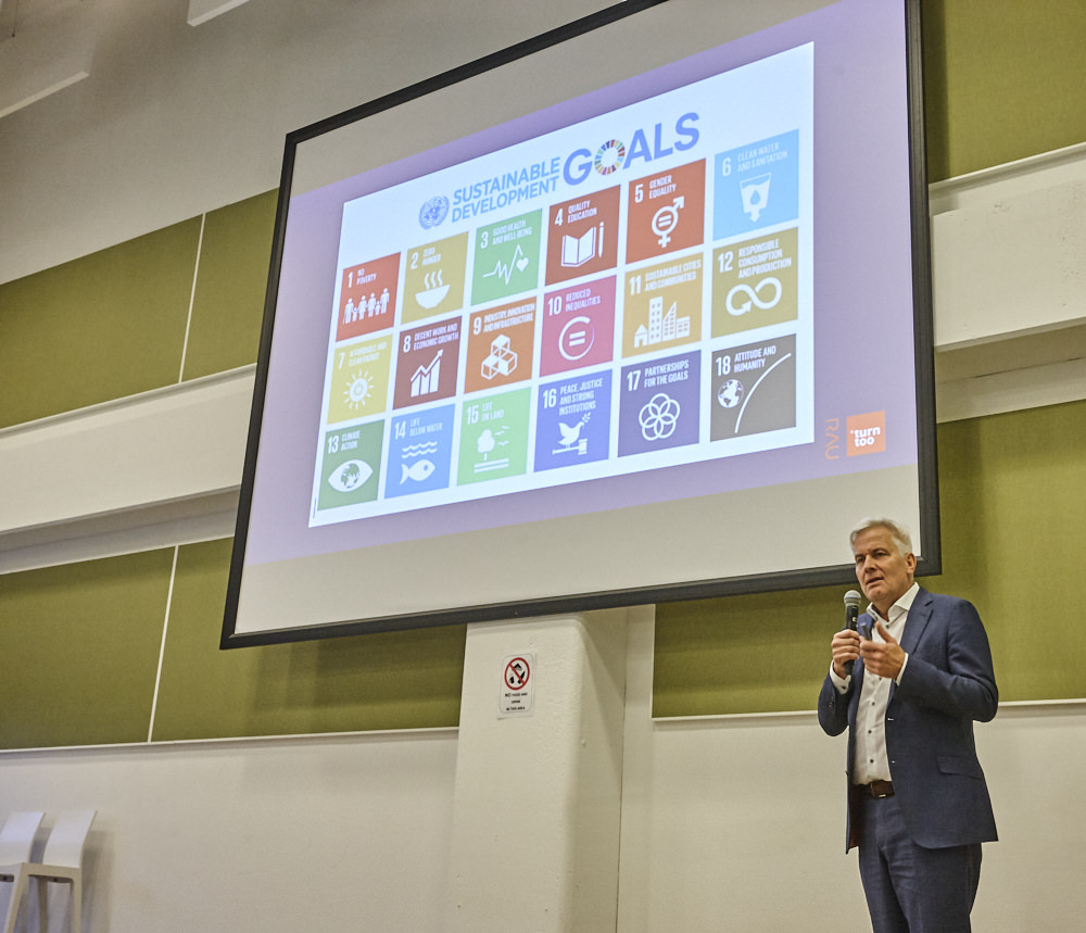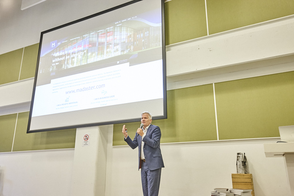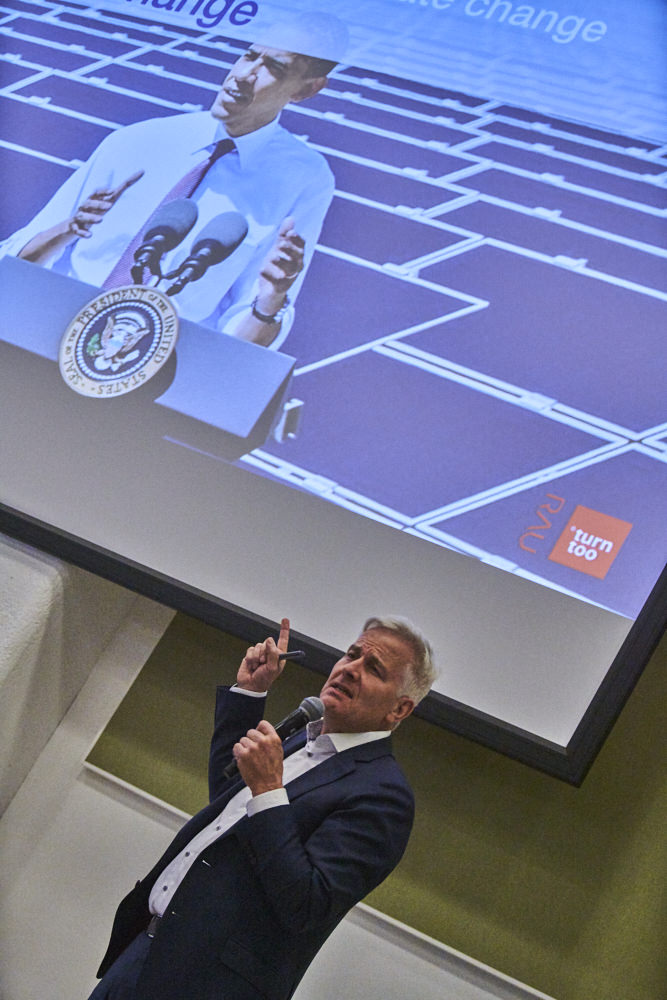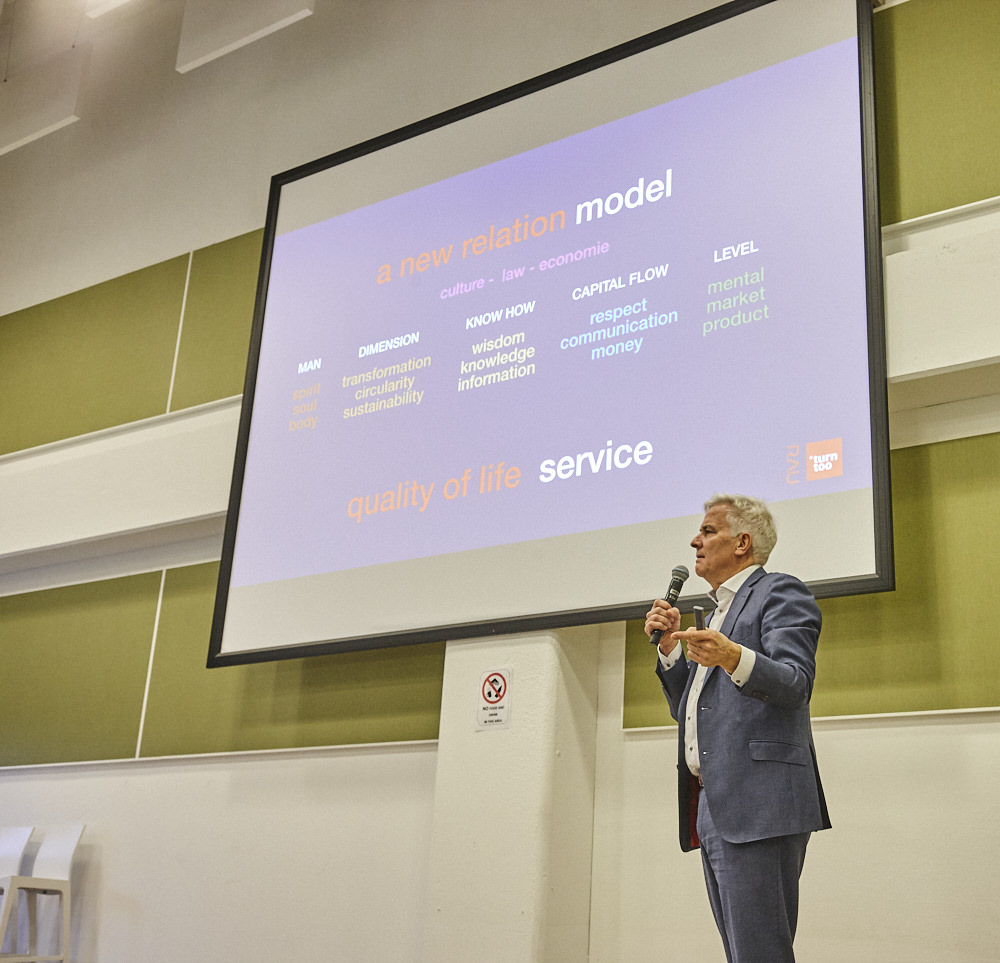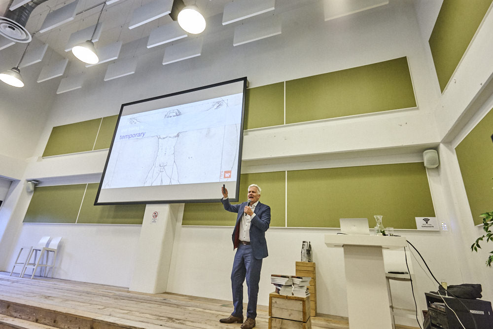 Vervolgens betrad Thomas Rau het podium. Rau is ondernemer, architect, innovator, inspirator en visionair en levert al jaren een grote bijdrage aan de nationale en internationale discussie over duurzaamheid, het gebruik van hernieuwbare energiebronnen in de architectuur en aan de vraag hoe te handelen in het licht van de huidige grondstoffen schaarste. Rau liet de aanwezigen nadenken over onze rol op aarde.